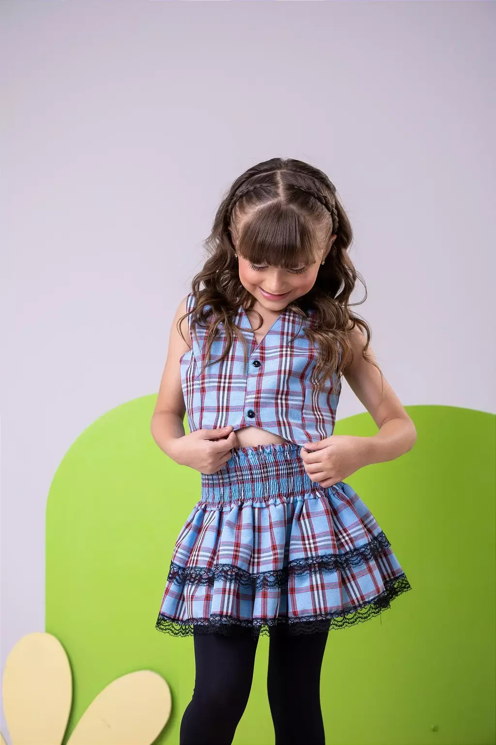 Arrase nas Festas Juninas com o Conjunto Junino Melissa Xadrez Azul!