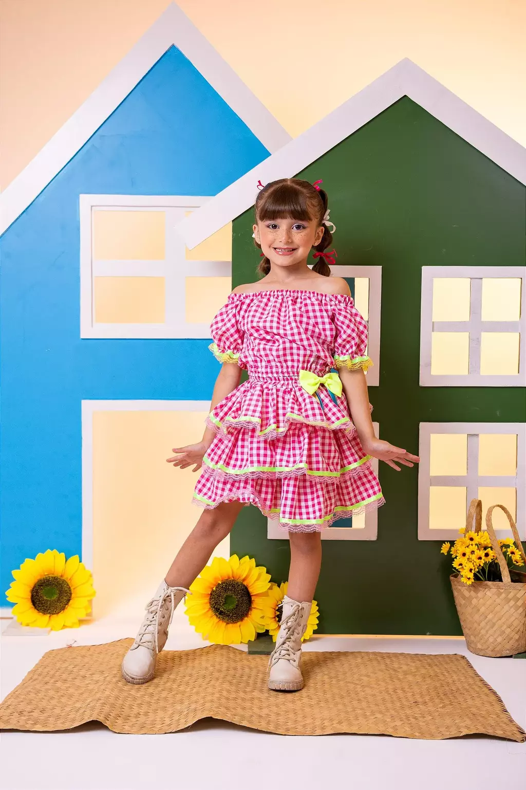 Conjunto Junino Sofia Xadrez Rosa