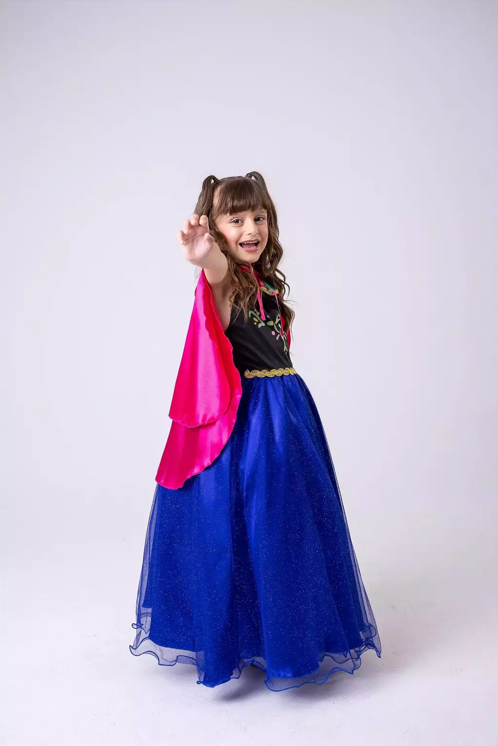 VESTIDO INFANTIL FROZEN COM CAPA ANNA