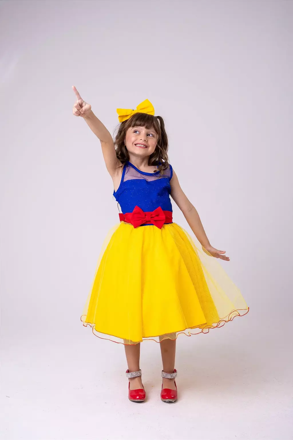 Este lindo vestido infantil Branca de Neve é perfeito para as pequenas princesas.