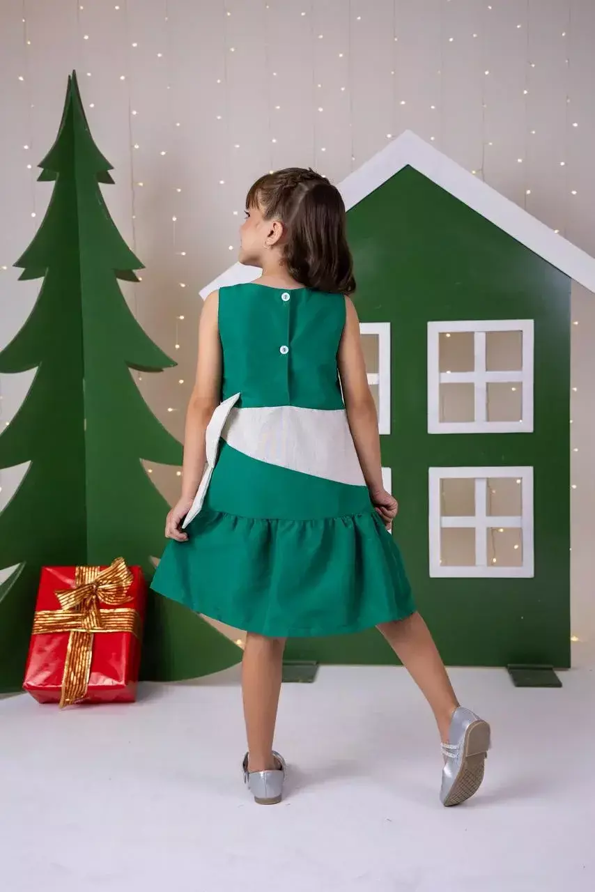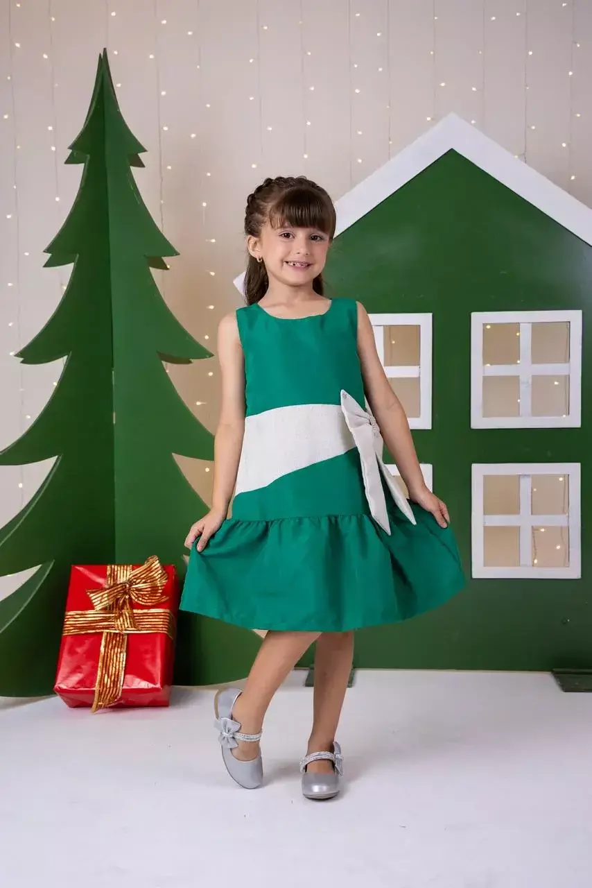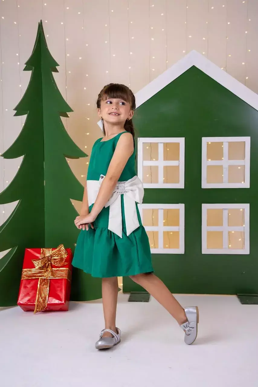 Esse é aquele vestido que consegue ser simples na forma, mas riquíssimo nos detalhes, perfeito para dar protagonismo à pequena em qualquer celebração natalina.